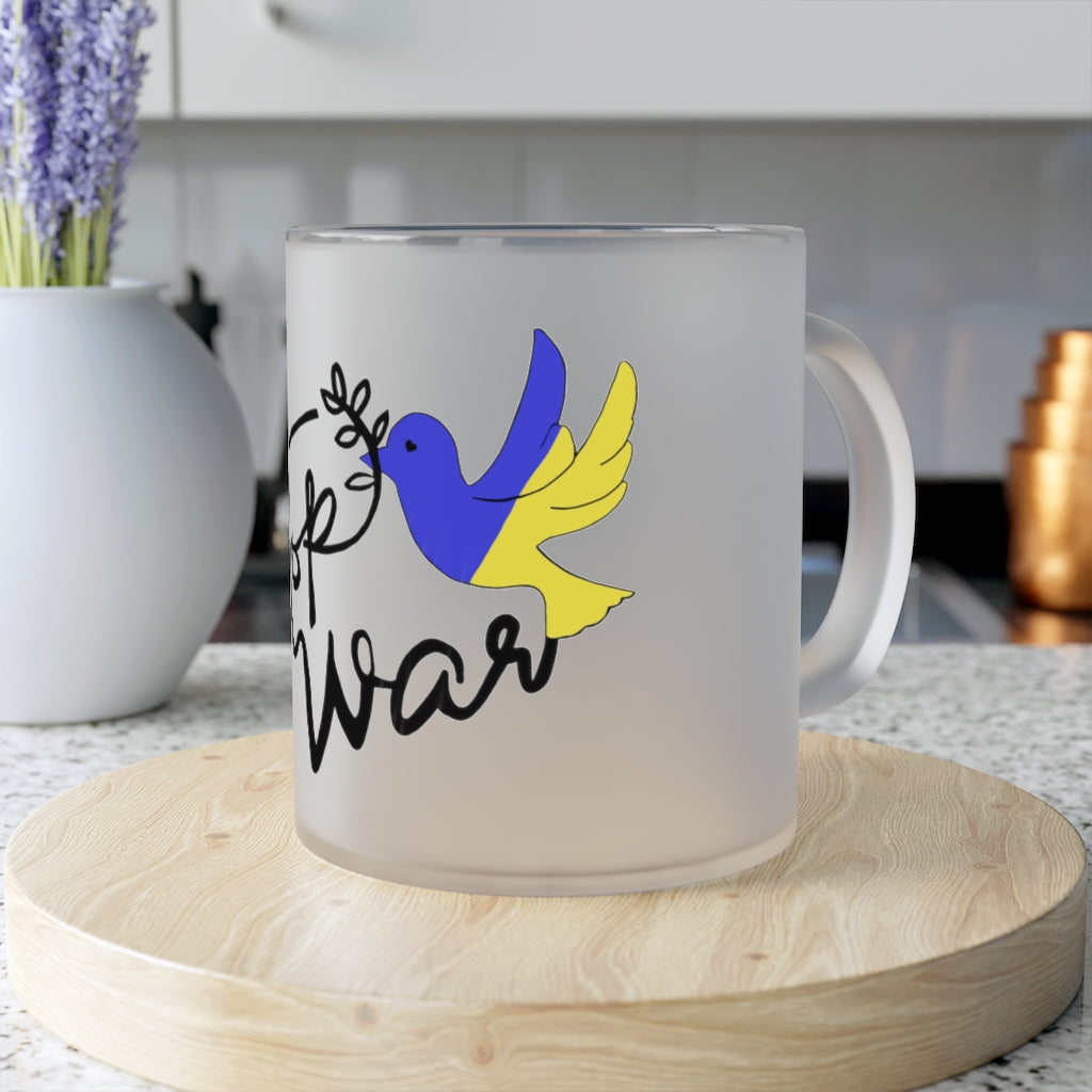 Stop War Ukraine Frosted Glass Mug