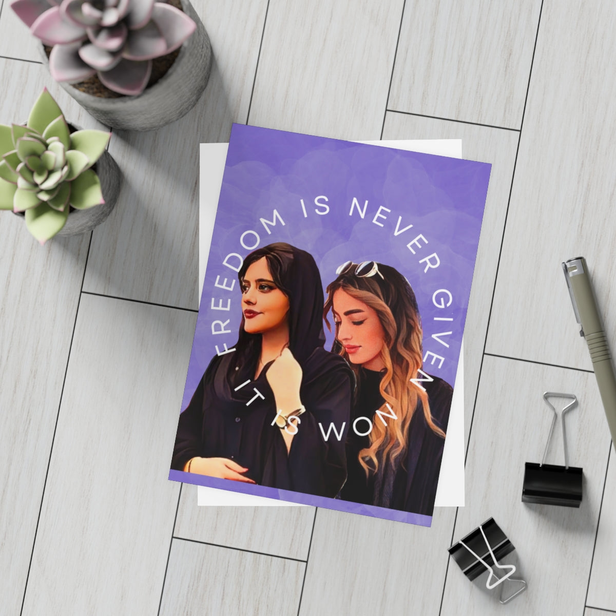 Mahsa Amini Hadis Najafi Stand with the women of Iran Unfolded Greeting Cards (10, 30, and 50pcs)