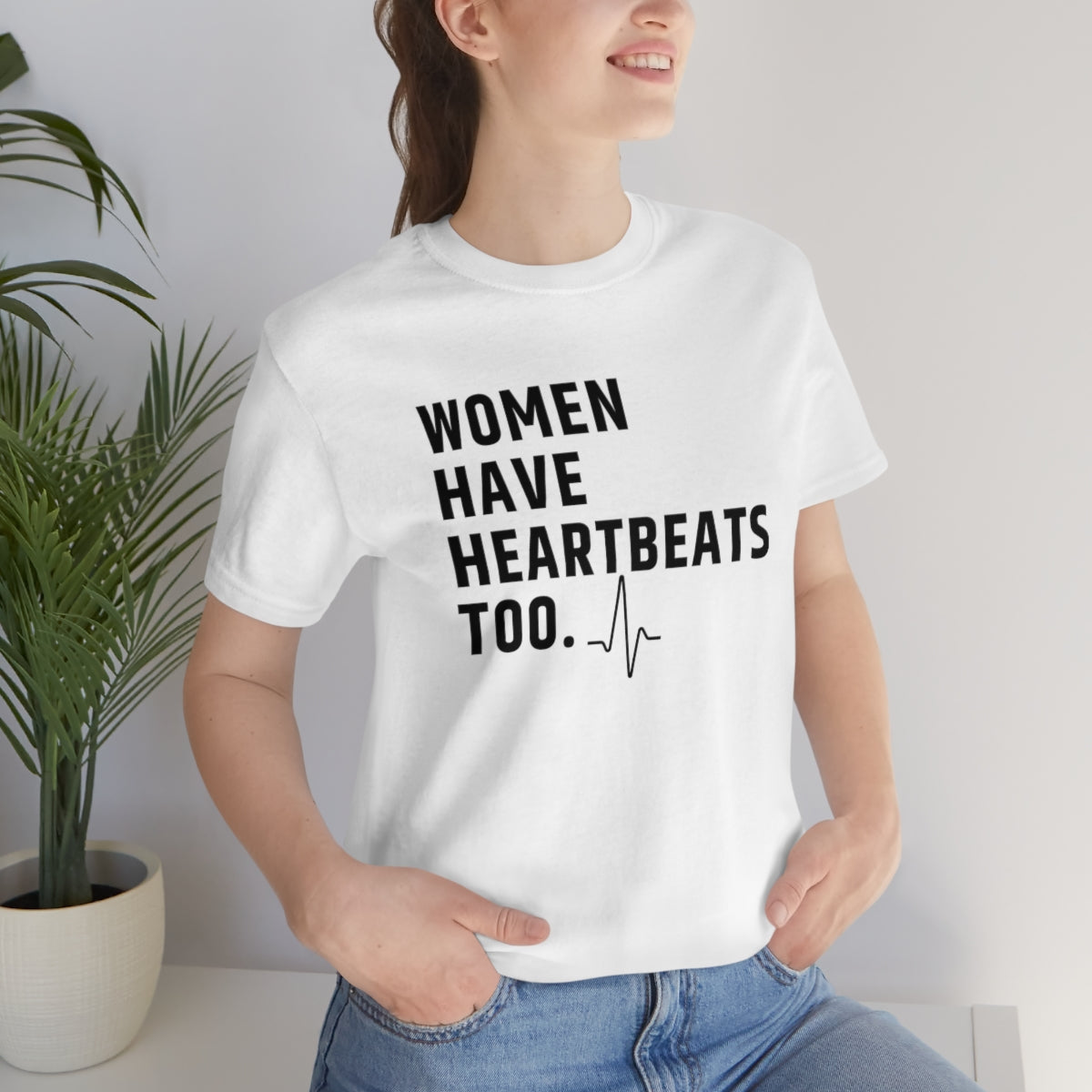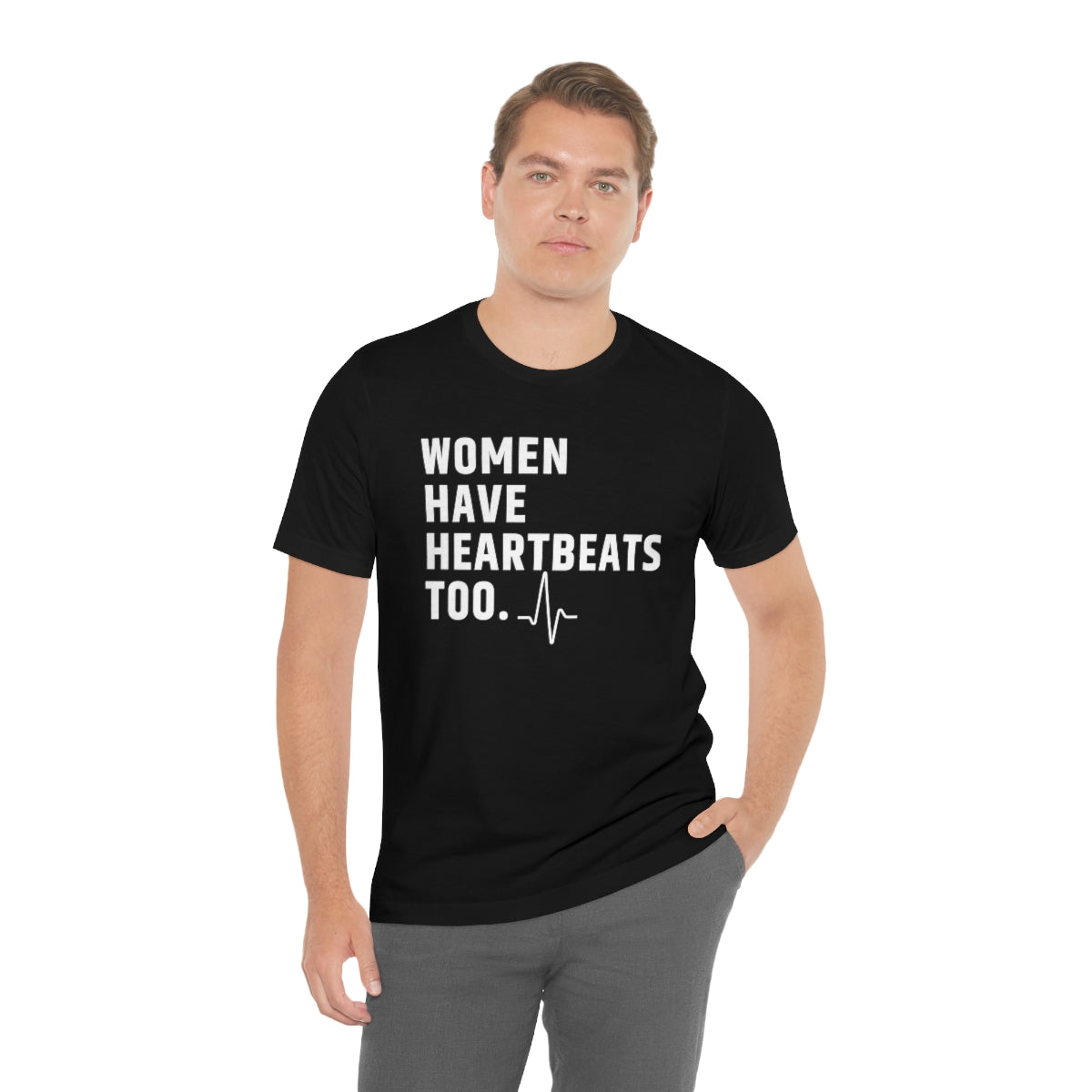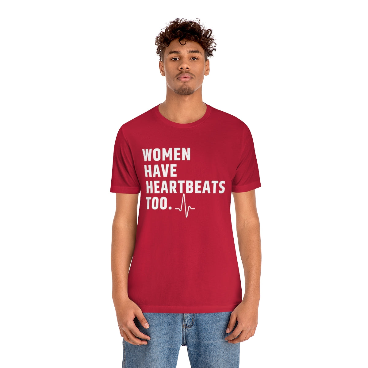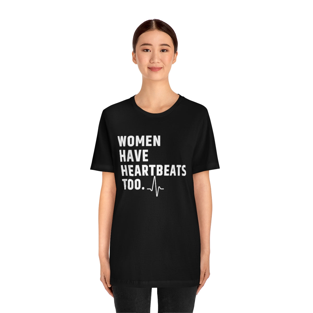 This kick ass unisex Women have heartbeats too jersey short sleeve tee fits like a well-loved favorite. Soft cotton and quality print will make you fall in love with it over and over again. These t-shirts have-ribbed knit collars to bolster shaping. The shoulders have taping for better fit over time. Dual side seams hold the garment's shape for longer.