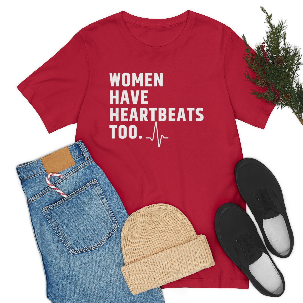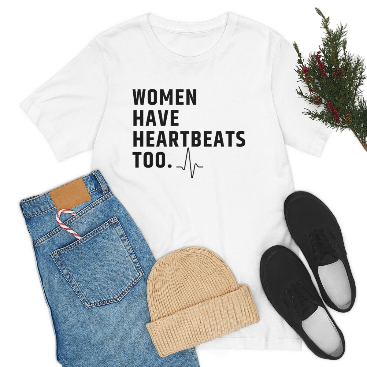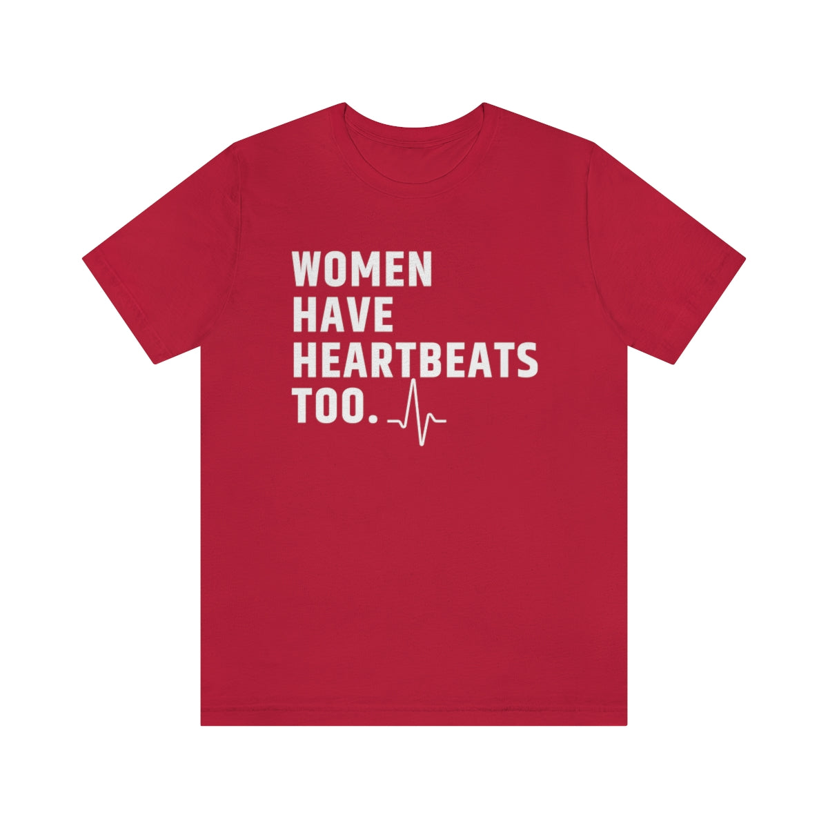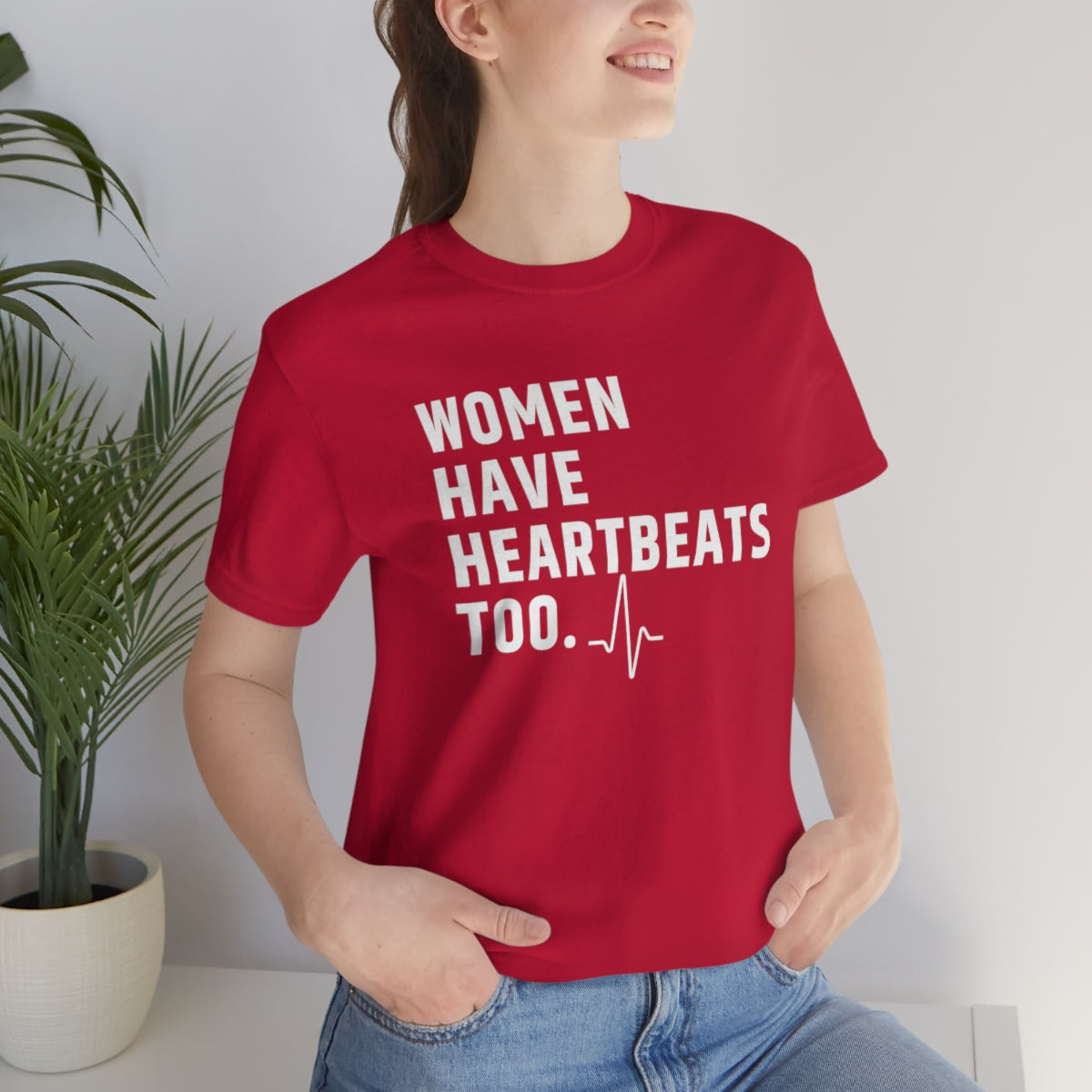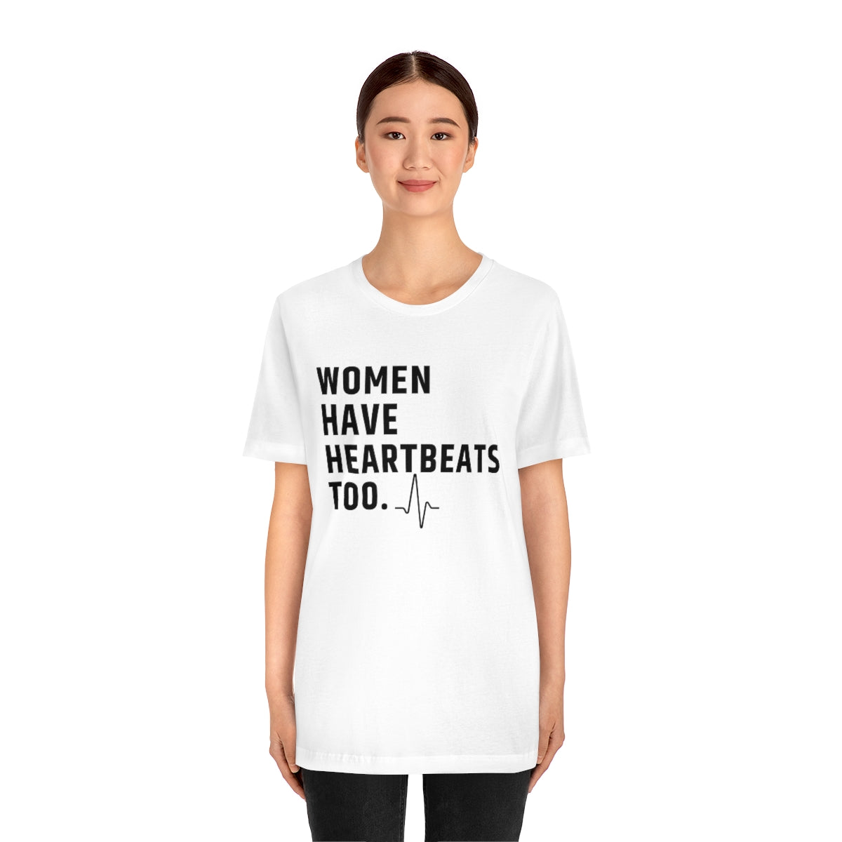 This kick ass unisex Women have heartbeats too jersey short sleeve tee fits like a well-loved favorite. Soft cotton and quality print will make you fall in love with it over and over again. These t-shirts have-ribbed knit collars to bolster shaping. The shoulders have taping for better fit over time. Dual side seams hold the garment's shape for longer.