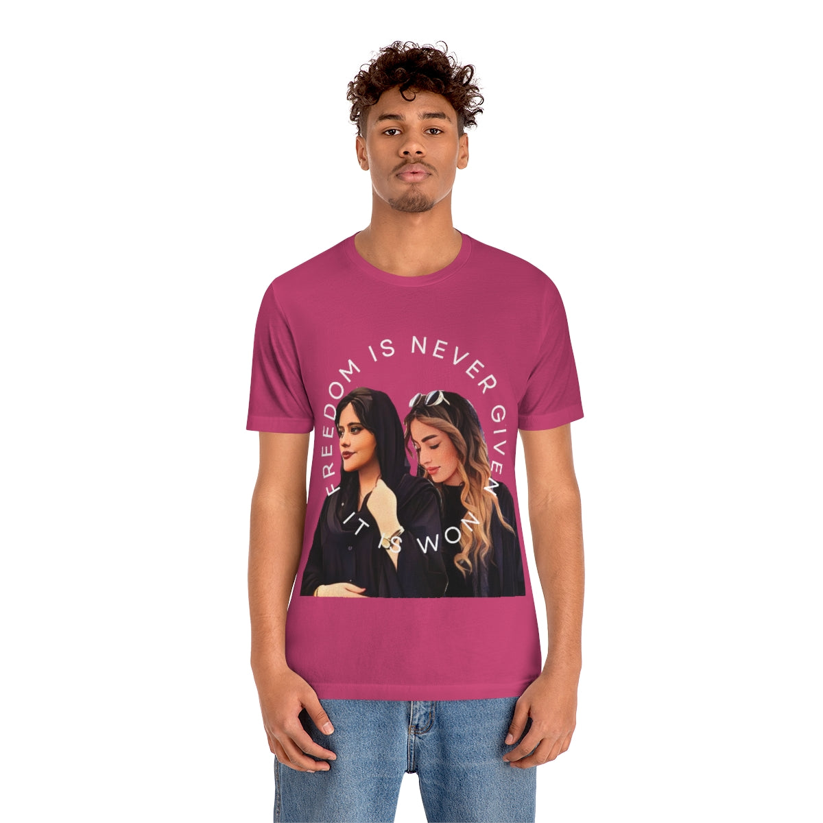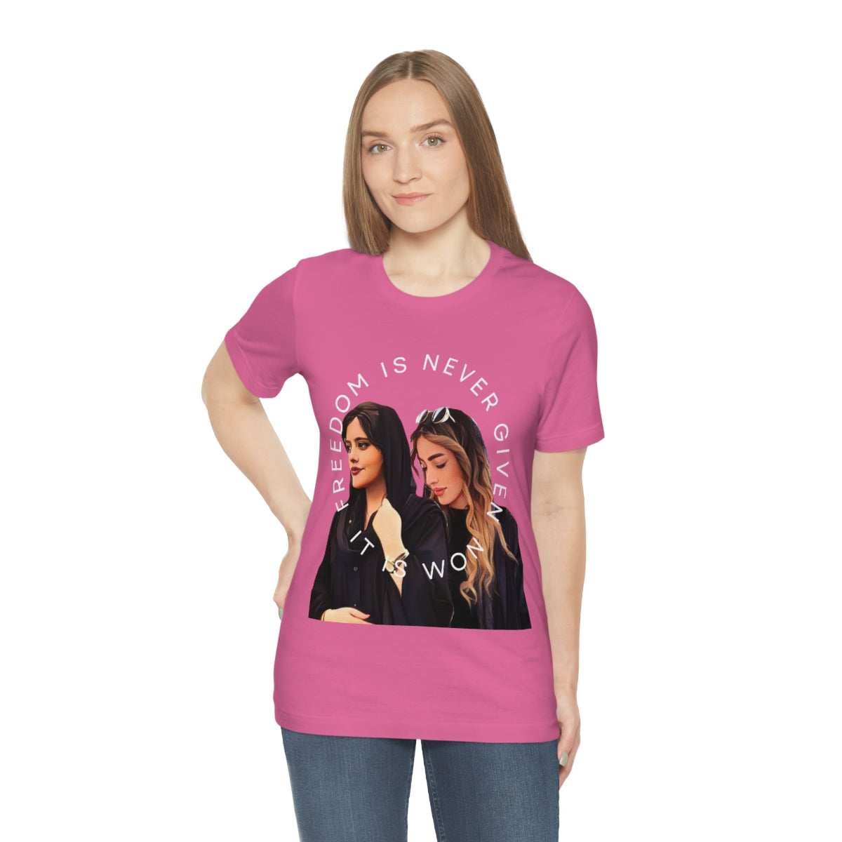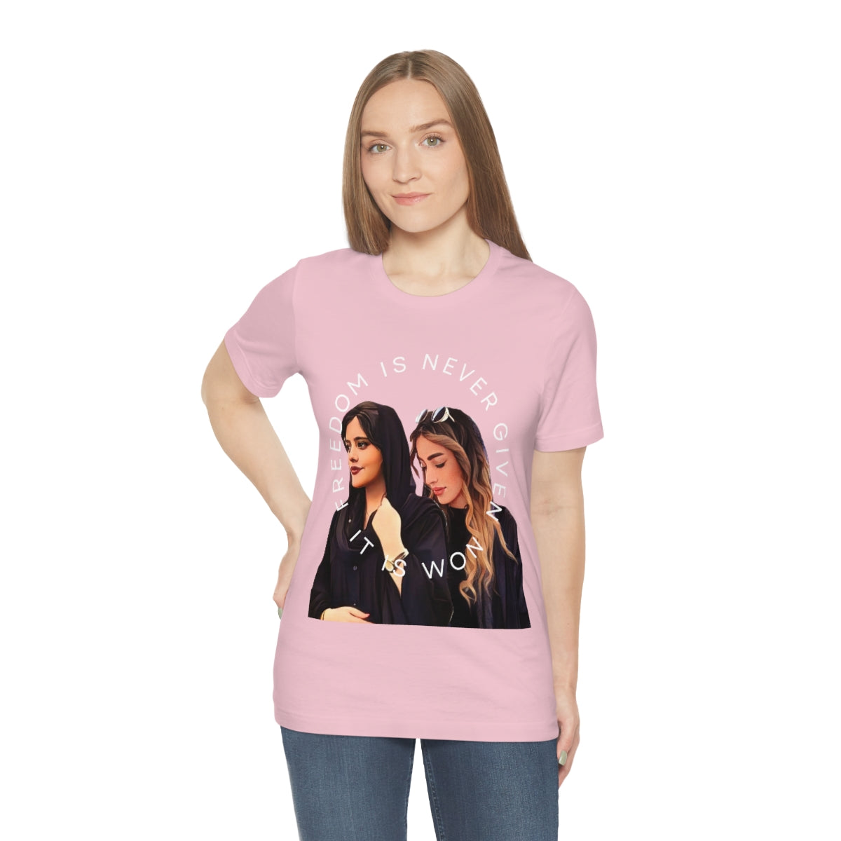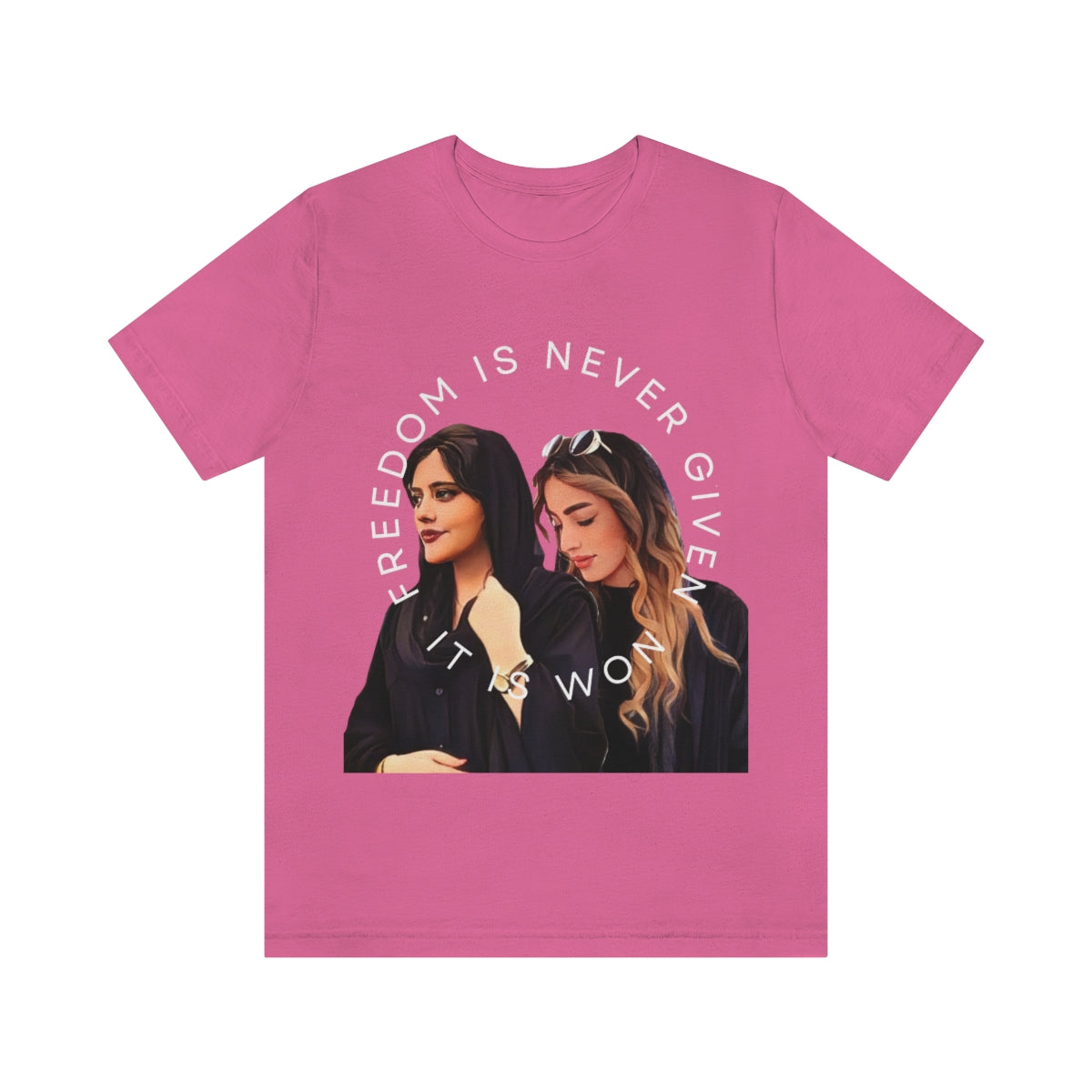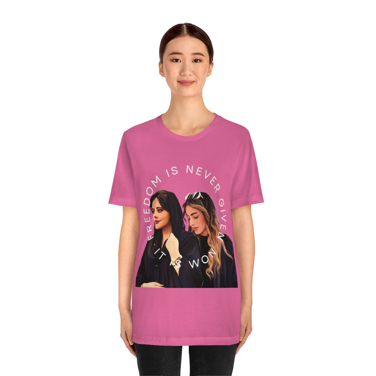This classic unisex jersey short sleeve tee fits like a well-loved favorite. Soft cotton and quality print make you fall in love with it over and over again. These t-shirts have-ribbed knit collars to bolster shaping. The shoulders have taping for better fit over time. Dual side seams hold the garment's shape for longer.