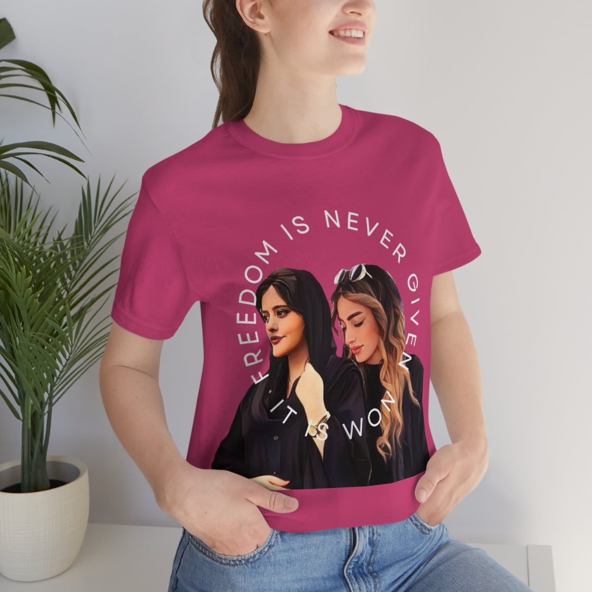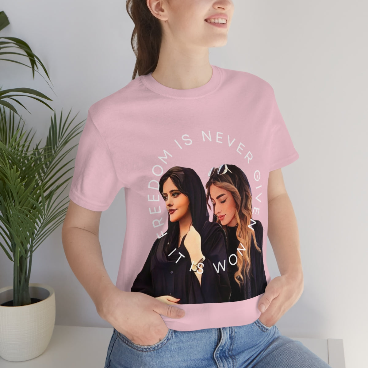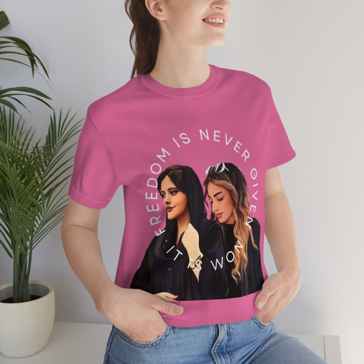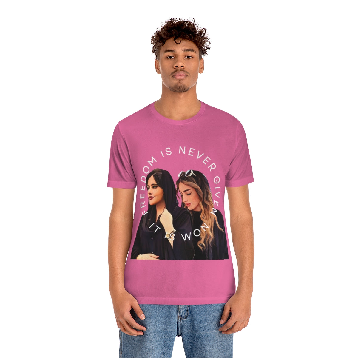 This classic unisex jersey short sleeve tee fits like a well-loved favorite. Soft cotton and quality print make you fall in love with it over and over again. These t-shirts have-ribbed knit collars to bolster shaping. The shoulders have taping for better fit over time. Dual side seams hold the garment's shape for longer.