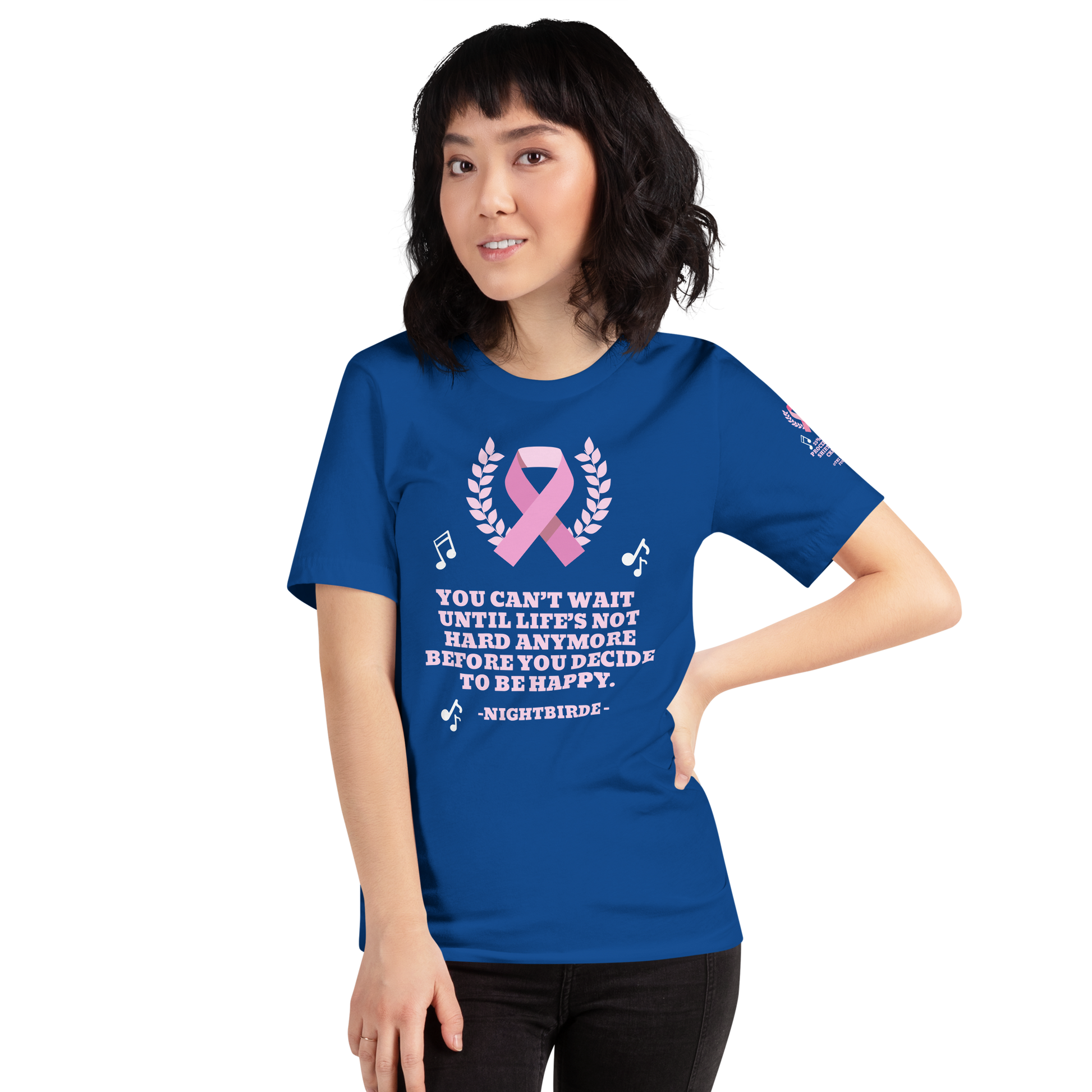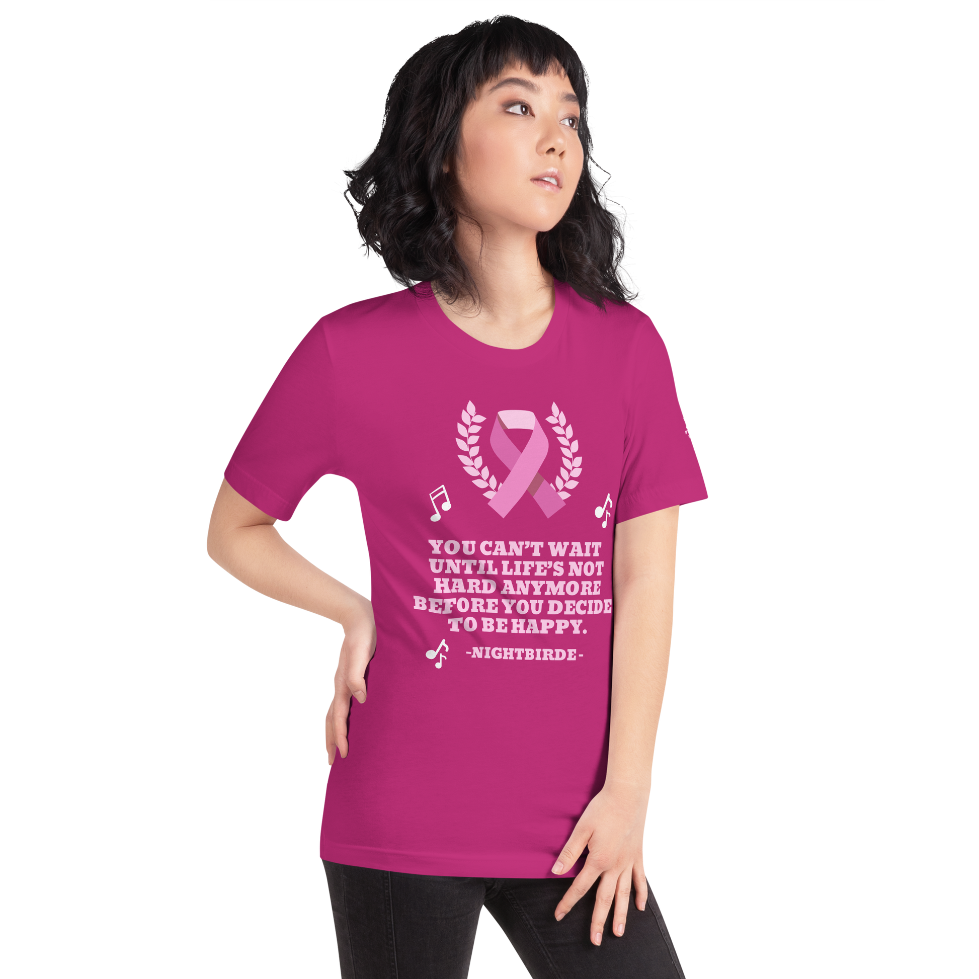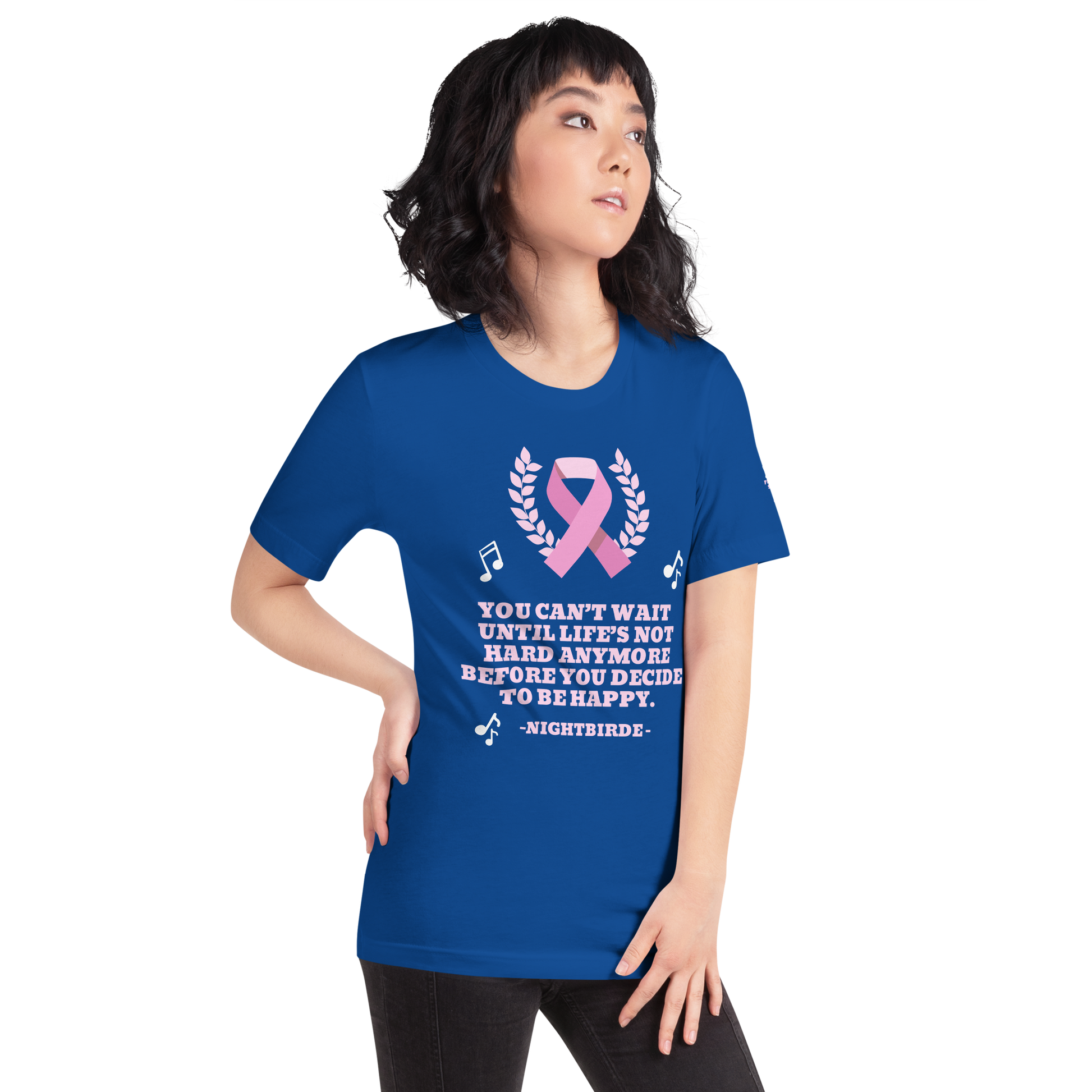 Unisex Inspirational breast cancer You can’t wait Until life’s not hard anymore Before you decide to be happy t-shirt NightBird Quote